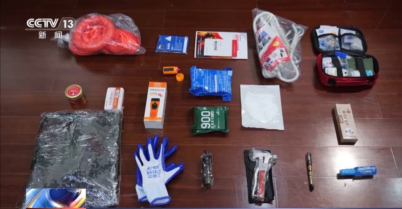 中国标准化研究院公共安全标准化研究所所长秦挺鑫:针对火灾这个典型的场景,我们额外配了灭火毯。还有过滤式消防自救的呼吸器,以及灭火器等用品。对于洪涝灾害的扩展包,配备了漂浮式的逃生绳,分体式的雨衣,以及长效的蜡烛。针对地震这种灾害场景的地震应急包,我们额外配备了阻燃的防砸头套,还配备了一个可折叠多功能铲,能够有效应对地震场景一些应急逃生需求。
