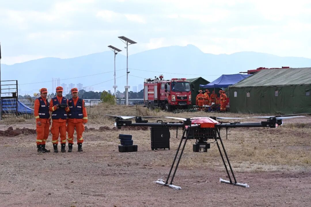 为破解复杂环境下应急救援通信“断、扰、盲”难题,野外驻训期间,昆明消防救援机动支队将大型载重无人机操作作为专项训练课题,开展全方位、高强度实战化训练,锤炼队伍在极端条件下的通信保障与应急处置本领。